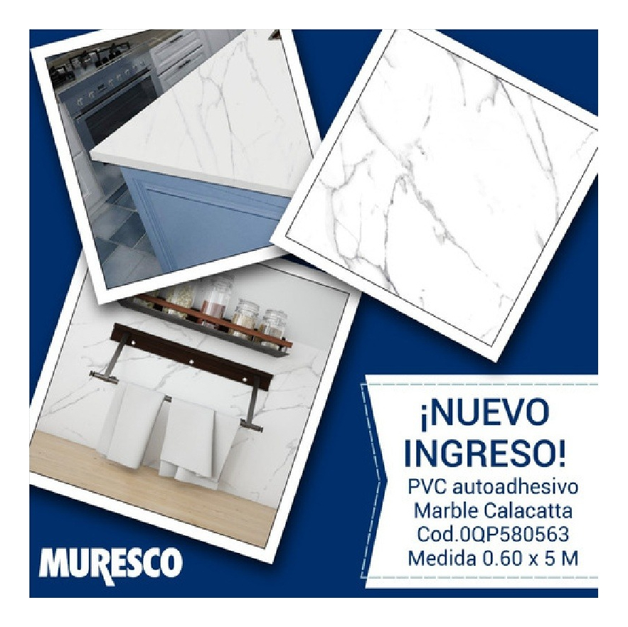 Vinilo Simil Marmol Autoadhesivo Muresco 5mtsx60cm Calacatta